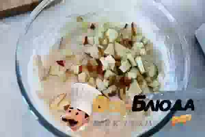 5. Примешать яблочные кусочки к довольно густому тесту для панкейков.