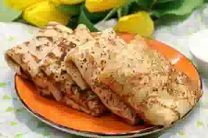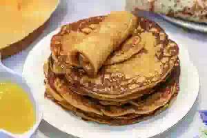 Толстые творожные блины на дрожжах Ингредиенты: дрожжи свежие - 15г (или сухие дрожжи 1.5 ч.л.) творог (творог сухой, жирность 9-18%) - 150г масло растительное для жарки растительное масло - 2 ст.л.