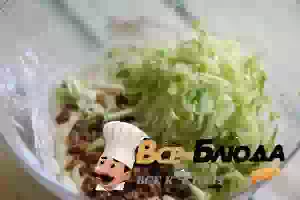 6. Натрем тонкошкурый молодой кабачок и добавим в тесто. Если в кабачке слишком много сока, то сначала отожмем его. Вмешиваем тесто с кабачком ложкой.