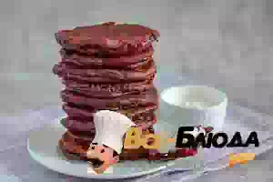 6. Переворачиваем розовые оладьи на другую сторону и готовим еще 1 минуту. Готовые оладьи перекладываем на бумажное полотенце, чтобы убрать излишек жира. Подаем в теплом виде со сметаной или йогуртом, посыпав рублеными орехами.