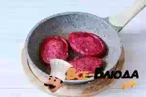 5. На прогретую сковородку наливаем масло и выкладываем при помощи столовой ложки подготовленное свекольное тесто. Обжариваем на небольшом огне до появления на поверхности оладий пузырьков.