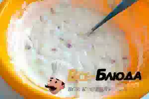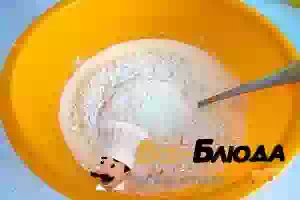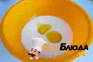 1. Влейте в миску кефир. Жирность у кефира может быть любой, но только не берите обезжиренный. Вбейте два средних яйца.