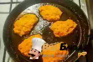 4. Прогреть сковороду с растительным маслом и выкладывать столовой ложкой оладьи. Жарить на слабом огне по 5 минут с каждой стороны около до румяного цвета. Готовые морковные оладьи подавать к столу горячими со сметаной или другим соусом по вашему вкусу.