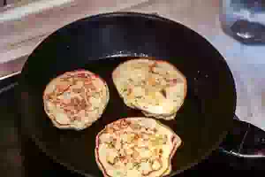 7. Затем примешать бекон с луком. Можно начинать печь оладьи.