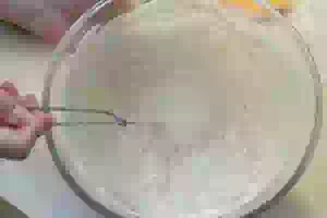 4. Подсыпать муку, продолжая перемешивать тесто.