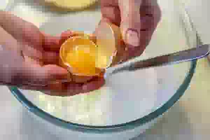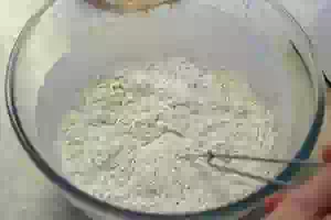4. Подсыпать муку, продолжая перемешивать тесто.