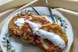 Как приготовить "Оладьи на кефире с капустой и зелёным луком"