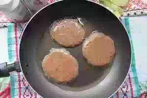 6. В сковороду нальем масло. Оно должно покрыть дно сковороды примерно на 2 мм высотой. Масло хорошенько прогреем. Затем, уменьшив огонь, выложим в раскаленное масло небольшие лепешки из подготовленного печеночного «теста» (примерно по полторы столовые ложки).