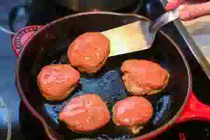 7. Разогреть сковороду и налить 2-3 ст.л. растительного масла. Столовой ложкой выкладывать в горячее масло печеночное тесто и жарить оладьи на маленьком огне с двух сторон до образования коричневой корочки.