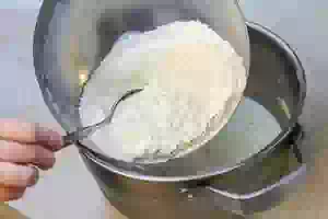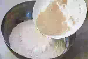 2. В другой миске смешать просеянную муку с сухими дрожжами.
