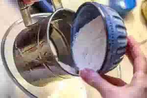 5. Теперь в эту же миску просеять муку с пекарским порошком.