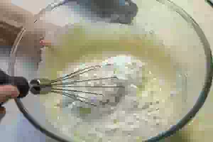 6. Размешать венчиком, чтобы получилось гладкое, однородное тесто.