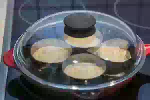 Перевернуть формы с тестом и продолжить готовить под крышкой еще примерно 7 минут.