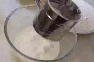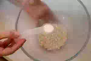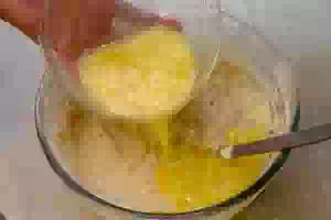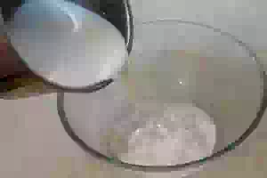 1. Если замешиваете тесто для пышных оладий на свежих дрожжах, то сначала раскрошите их в миске, посыпьте 1 ч.л. сахара и