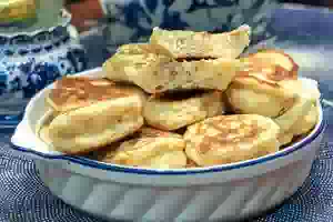 8. Разогреть сковороду с растительным маслом и выкладывать столовой ложкой тесто. Чтобы тесто легко соскальзывало с ложки, смажьте её растительным маслом и намочите водой. Между дрожжевыми оладьями обязательно оставляйте промежутки, чтобы они не слиплись во время жарки. Жарить на небольшом огне, так оладьи заметно увеличатся в объеме, гарантированно пропекутся и останутся пышными даже, когда остынут. Готовые оладьи на дрожжах подавать с любым соусом, вареньем или сметаной.