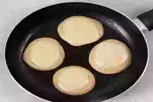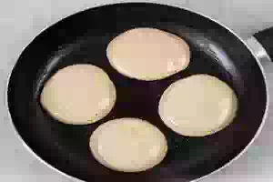 5. Затем добавьте поверх каждой оладьи еще по 1 ст. ложке теста. Снова накройте сковороду крышкой и готовьте оладьи ещё примерно 2-3 минуты, пока новый слой теста не станет матовым.