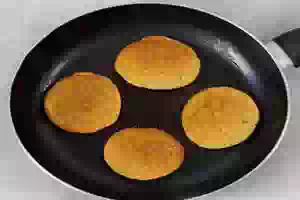 7. Осторожно переверните оладьи, накройте сковороду крышкой и обжарьте ещё примерно 2-3 минуты, до золотистого цвета. Затем повторите процесс с оставшимся тестом. Оладьи получаются мягкими и нежными, поэтому переворачивать их лучше с помощью 2 вилок, а не лопатки.