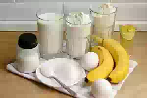 1. Подготовьте ингредиенты. Вместо кефира можно использовать любую кисломолочную продукцию - питьевой йогурт, кислое молоко, ряженку, сметану. Бананы лучше взять зрелые, сладкие, можно с темными пятнышками на кожуре. Тесто готовится очень быстро, лучше заранее отмерить нужное количество ингредиентов.