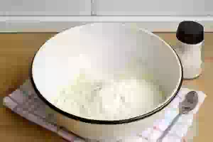2. Муку просейте через сито в глубокую миску. Добавьте соль и соду.