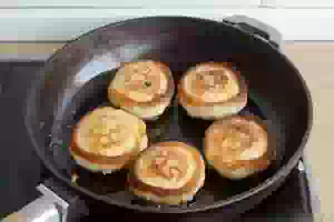 9. Затем лопаткой переверните банановые оладьи на другую сторону и жарьте ещё примерно 1-2 минуты, до румяности.