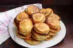 10. Переложите обжаренные оладьи на тарелку, застеленную бумажной салфеткой, чтобы впиталось лишнее масло. Таким образом пожарьте все оладьи.
