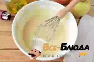 5. Чтобы кляр получился без комочков, используйте венчик. Хорошенько взбейте им тесто.