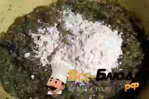 9. Добавить муки, хорошо перемешать. Разогреть масло растительное в сковороде, выкладывать по одной столовой ложки фарша, и обжарить с 2-х сторон до золотистой корочки. Если оладьи прилипают, то добавьте ещё муки и яйцо.