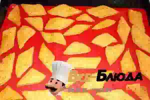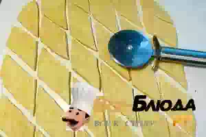 5. Затем раскатайте тесто в пласт толщиной 6-7 мм. При помощи ножа для пиццы вырежьте печенье.