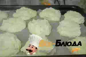 8. Столовой ложкой разложить на застеленный пекарской бумагой противень круглые печенья.