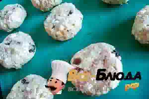 4. В творожную массу просейте муки. Тесто должно быть довольно мягкое. Смочите руки в воде и скатайте небольшие шарики, слегка приплюсните и разложите на застеленном пекарской бумагой противне, оставляя интервал между печеньем 2-3 см. Выпекайте при 180С около 25 минут. Точное время выпечки зависит от размера печенья и вашей духовки. Готовое творожное печенье переложить с противня на блюдо и подавать к столу.