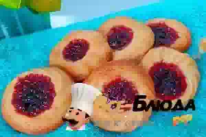 5. Для начинки курабье варенье смешаем с кукурузным крахмалом. Разложим варенье в углубление печенья. Теперь отправим курабье в разогретую до 200С духовку буквально минут 15. Готовое рассыпчатое печенье достаем из духовки и даем ему немного остыть. Курабье с вареньем готово.