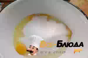 3. Затем добавить к полученной яично-сахарной смеси растопленное сливочное масло и хорошо перемешать.