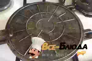 7. Хорошо прогретую с обеих сторон форму смазать растительным маслом при помощи кулинарной кисточки.