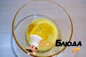 1. Масло для приготовления печенья должно быть комнатной температуры. Поэтому, достаньте его заранее из холодильника. В миску вбейте яйца. Взбейте их венчиком до пены. Всыпьте сахар и еще раз взбейте, чтобы не осталось кристалликов сахара.