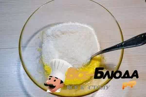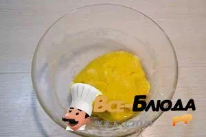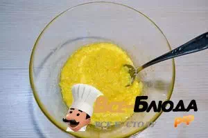 2. Положите в миску мягкое масло. И ложкой размешайте смесь.