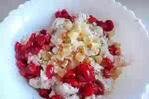 2. Добавьте 100-130г вишни без косточки и 100г цукатов. Перемешайте.