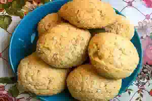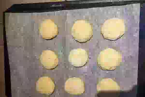 5. После этого перекладываем печенье в застеленную пекарской бумагой форму для запекания. Ставим печенье в предварительно разогретую до 180С духовку на 20 минут, пока на печенье не появится светлая корочка (готовность можно проверить зубочисткой). Следите, чтобы печенье не подгорело снизу. Готовое печенье на кефире переложите с противня на тарелку, дайте ему немного остыть и можно подавать к столу.