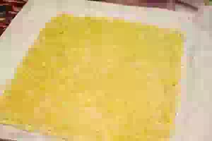 8. Тесто разровнять на противне, предварительно застеленном пекарской бумагой.