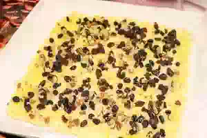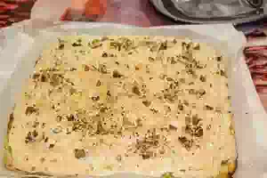 12. Снова посыпать молотыми орехами и отправить противень в прогретую до 200С духовку. Время выпечки - 20 минут.
