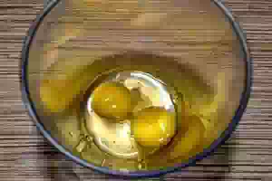 1. Для приготовления бисквитного теста вам понадобится погружной блендер или миксер, которыми будет удобно и быстро взбивать ингредиенты. В стакан блендера вбейте куриные яйца. Взбейте их до пены.