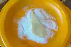 1. Сливочное масло или маргарин для выпечки заранее достать из холодильника (приблизительно за час до приготовления печенья), чтобы оно немного подтаяло и стало мягким. Положите размягченное масло в глубокую миску и разомните вилкой. Добавьте в миску к маргарину сметану.