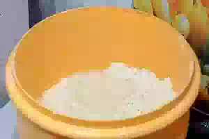 1. Для приготовления теста для печенья муку смешать с солью. Выложить муку в глубокую миску и добавить 100г нарезанного кубиками охлажденного сливочного масла (оставшееся масло понадобится для начинки). Руками перетереть масло с мукой в крошку.