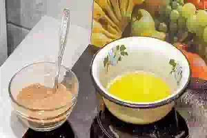 5. Корицу смешать с оставшимся сахаром. Оставшееся масло растопить.
