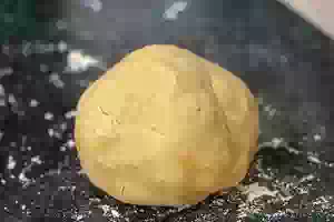 4. Разделить тесто на 2-3 части. С одной частью можно работать, остальное тесто пусть остается в холодильнике и ждет своей очереди. Отделять от куска теста небольшие кусочки быстро скатывать шарики размером с грецкий орех.
