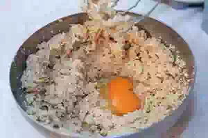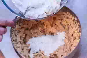 2. Добавить муку в масляно-сахарную смесь и размешать вилкой.