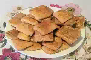 3. Тесто раскатать в слой толщиной 3-5 мм. Разрезать тесто на квадраты или ромбы, как получится. Разложить печенье на застеленном пекарской бумагой противне.