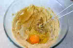 3. К сахарно-масляной смеси добавить яйцо. Снова тщательно взбить.
