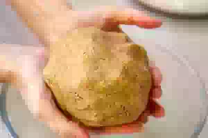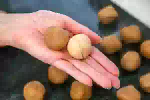 7. Спустя указанное в рецепте время вынуть из холодильника тесто и слепить из него круглое печенье размером с грецкий орех.