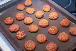 9. На противень, застеленный пекарской бумагой, выложить печенье на расстоянии 2-3 см друг от друга. Отправляем выпекаться в заранее разогретую духовку до 180С духовку на 10-15 минут. Проверить готовность медового желудевого печенья, разломив одно из них. Противень с подрумянившимся печеньем вынуть из духовки. Печенье из желудей готово.