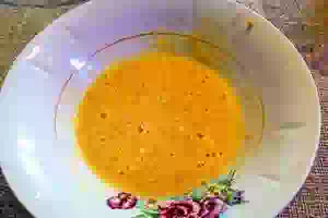 2. Яйца растереть венчиком с сахаром. С апельсина снимаем цедру и смешиваем с яичной массой.